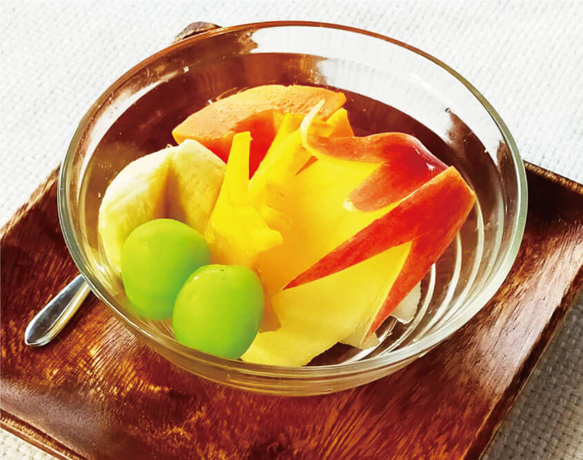 飲み物は手作りのジャムやコンポートをベースに稲沢フルーツ園栽培の果物を中心に化学添加物は不使用の体に優しいものになっています。