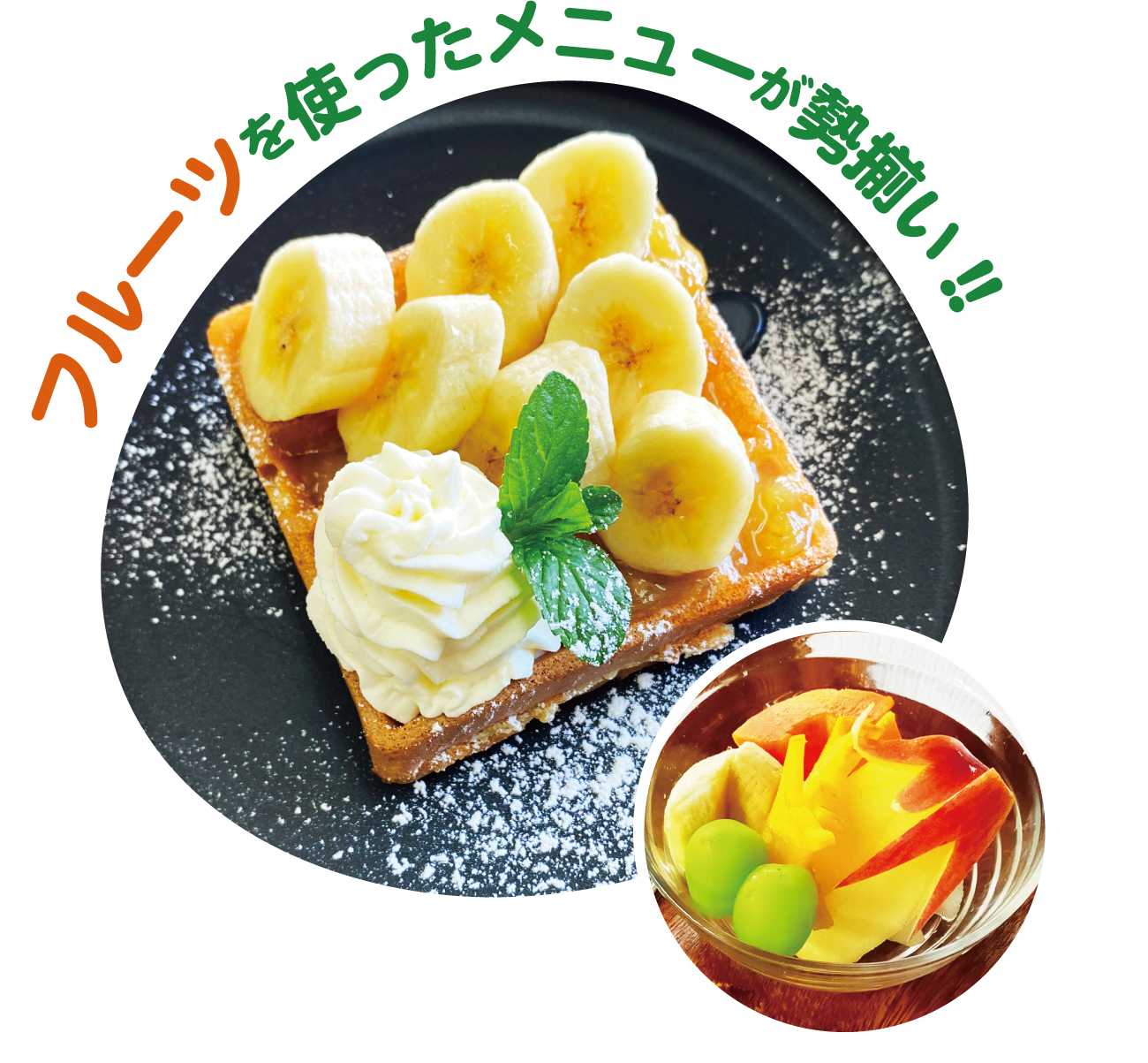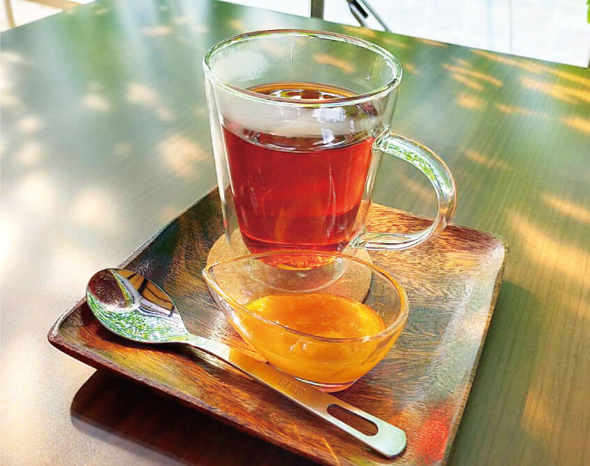 飲み物は手作りのジャムやコンポートをベースに稲沢フルーツ園栽培の果物を中心に化学添加物は不使用の体に優しいものになっています。