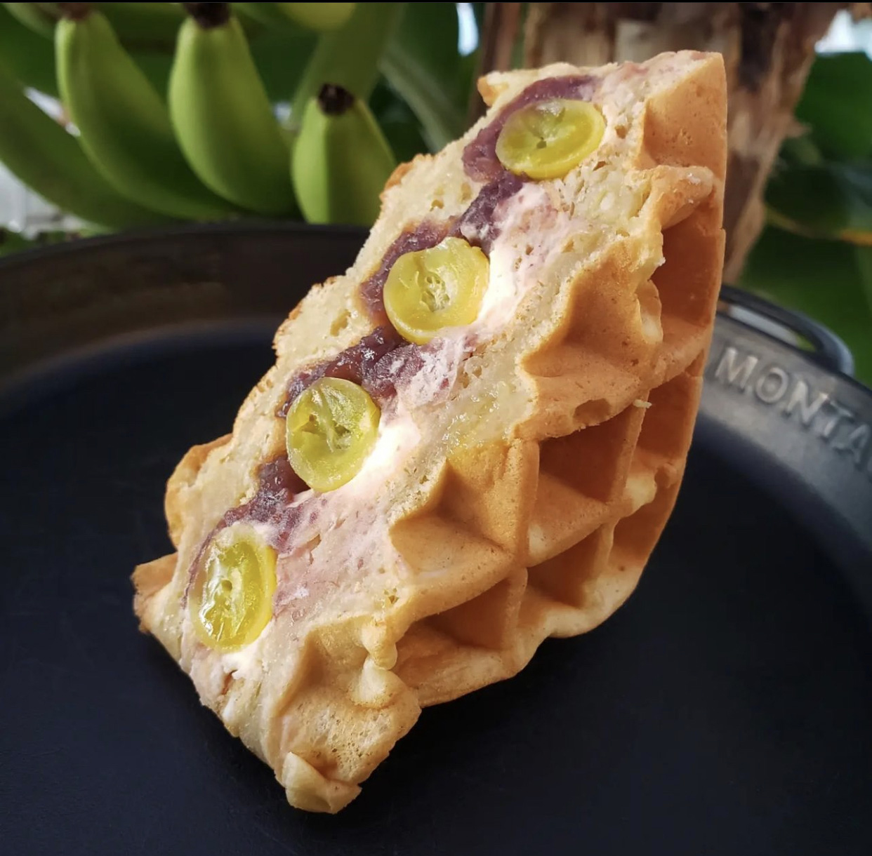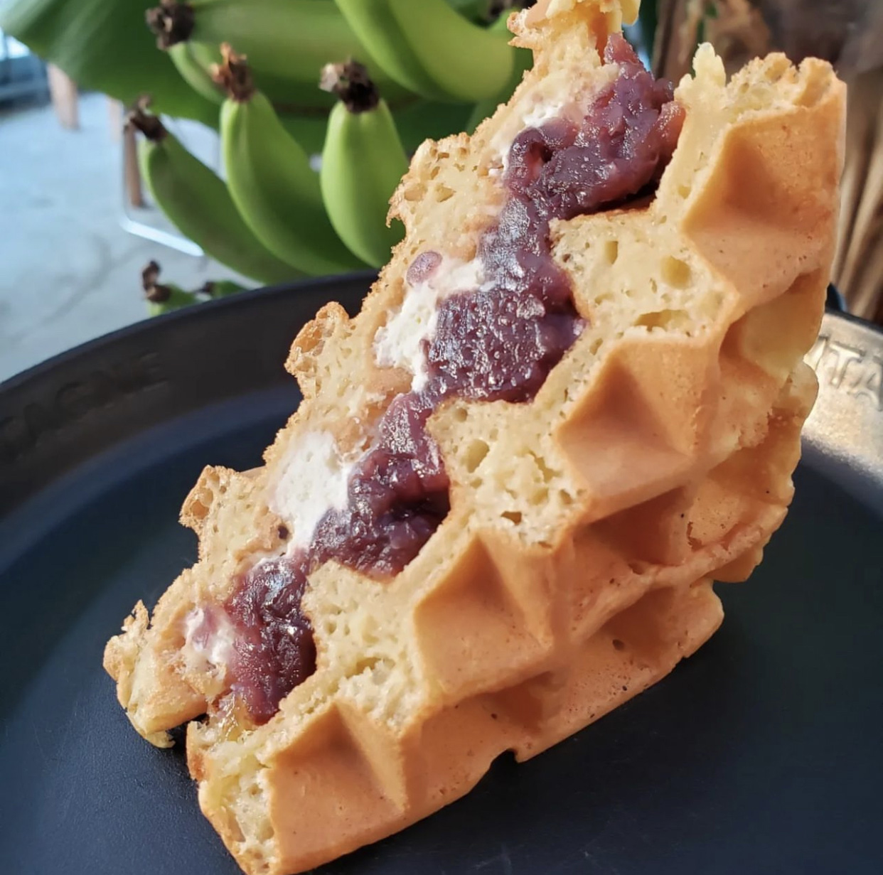 稲沢といえば銀杏(祖父江産ぎんなん)は外せないですね♪ この季節の風物詩となっています。試食を重ねてついにワッフルサンドにラインナップ! 絶妙なゴロゴロ感。ここ「ばななんぼう」でしか楽しめない一品に仕上がりました。